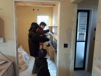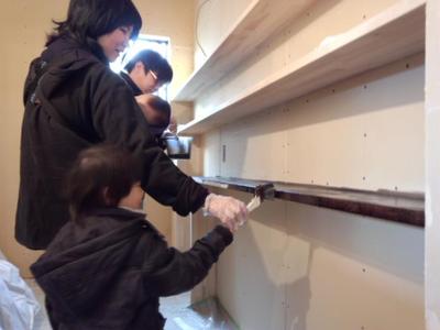 なんと、このお家は仕上げ工事を「施主さま」に少し手伝ってもらってます![]()