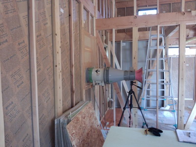今日(11月6日)は、一宮町で建築中の「一宮町のヤングジェネレーションのお家」の気密の測定をいたしました。