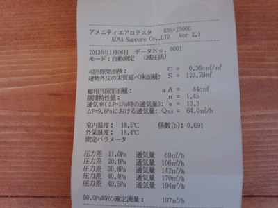 「一宮町のヤングジェネレーションのお家(仮)」の気密性能はC値「0,36c㎡/㎡」でしたが(少し自慢