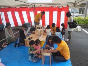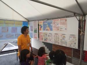 パネルコーナーでは マドリエスタッフが、子供達に「地球温暖化」