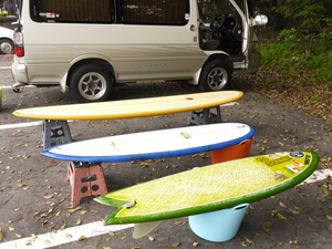 3者3様のサーフボード。チョッピリお腹が出てきたオジサマ達にはこういった