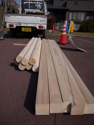 今回使用する材料。あらゆる状況から考え ヒノキを使用!