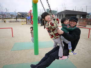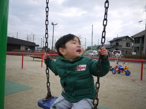 ブランコから落ち、少し「ブランコ恐怖症」になっているTO-Yのリハビリ風景。完全に嫌がってますね~。