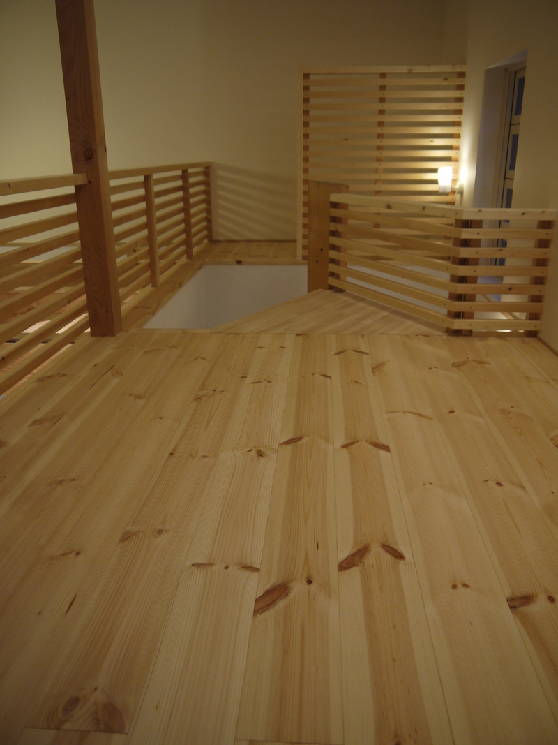 珍しい「木製螺旋(らせん)階段」。慣れると、そうでもないのですが、初めての方は少し怖いかも・